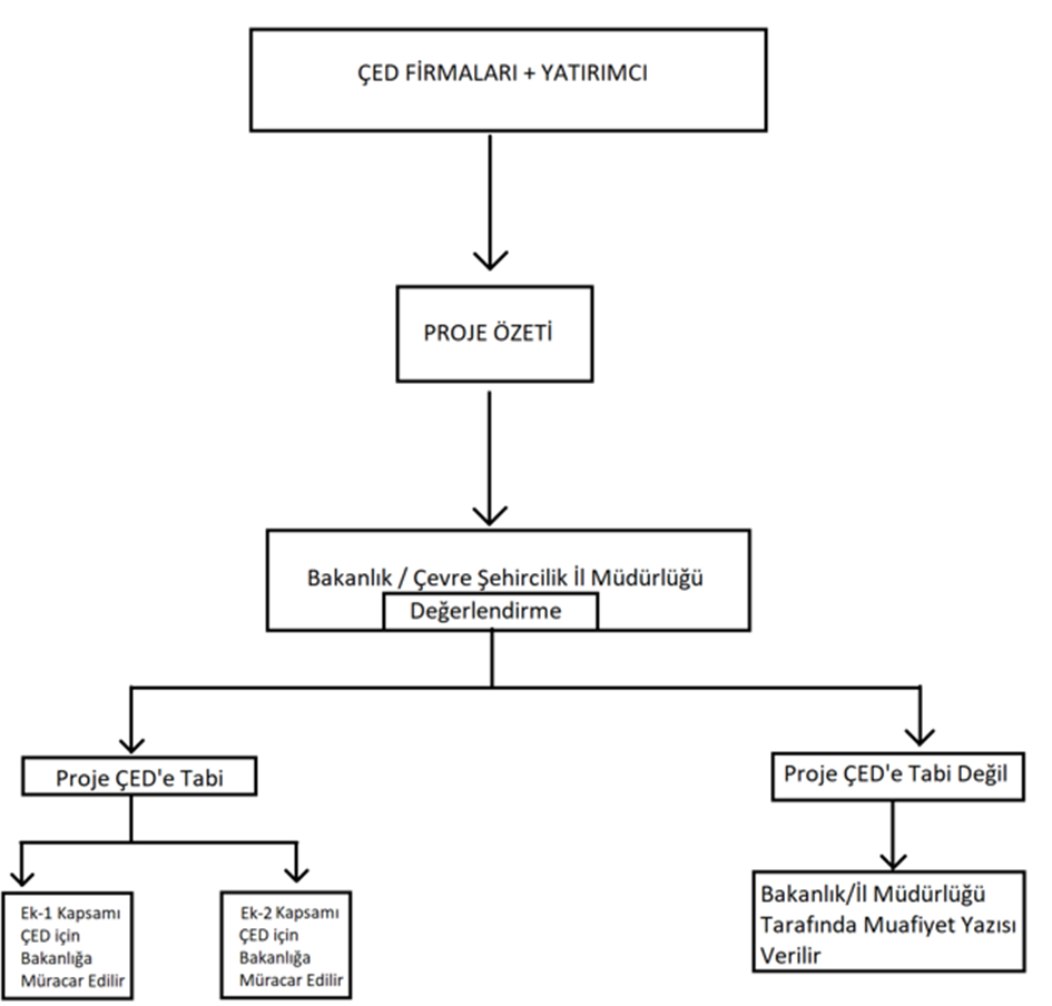 • Bakanlık, projenin çevresel etkilerini değerlendirerek, projenin ÇED raporu alıp almayacağına karar verir. Eğer proje, ÇED raporu gerektirmiyorsa, bu süreç sonlanır.